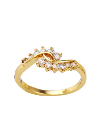 Hullámos 18k gold filled gyűrű, fehér kristályokkal