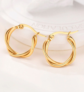 Ha elegáns, de mégis egyszerű fülbevalót keresel, akkor az Evona fonott hatású fülbevaló tökéletes választás számodra. A hipoallergén 316L nemesacélból készült karika fülbevaló 18 karátos arany bevonattal van ellátva, amely kiemeli stílusodat és egyediségedet.