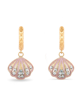 Shelly nemesacél karika fülbevaló, pink kagyló dísszel