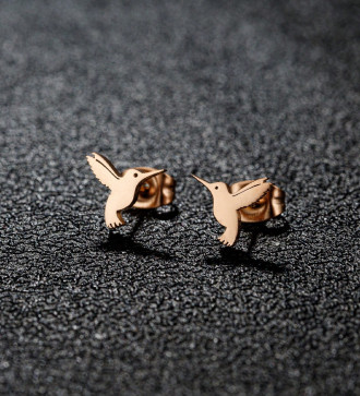 Ébreszd fel a természet szeretetét ezzel a finom kidolgozású kolibri fülbevalóval, amely hipoallergén 316L nemesacélból készült, rózsaarany bevonattal.