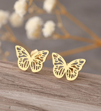 Ébreszd fel a természet szeretetét ezzel a finom kidolgozású, áttört mintájú lepke fülbevalóval, amely hipoallergén 316L nemesacélból készült, arany bevonattal.