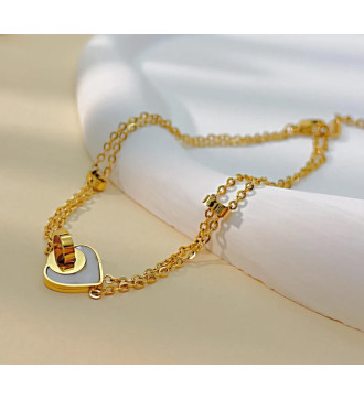 Gyöngyház szív nemesacél bokalánc, 18k arany bevonattal