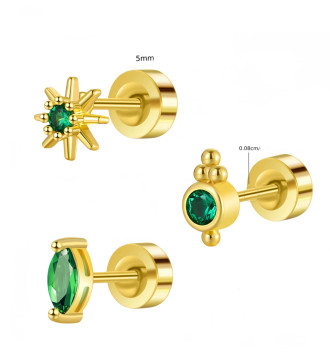 3 pár orvosi fém fülpiercing szett, melynek különleges smaragdzöld kristály díszítései igazán lenyűgözőek! A szett tartalmazza a különböző méretű fülékszereket, így könnyedén variálhatod őket a mindennapokban. Mindegyik ékszer szára és a zár is hipoallergén 316L nemesacélból készült. Kényelmes viseletük és az egyedi designjuk miatt ezek az ékszerek tökéletesen alkalmasak mindennapi viseletre, de különleges alkalmakra is.