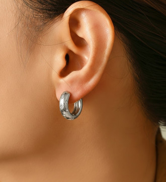 Hipoallergén 316L nemesacélból készült, ovális karika alakú fülbevaló, fehér cirkónia kristályokkal díszítve.