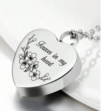 Szív nemesacél kegyeleti medál nyaklánccal, gravírozott szöveggel